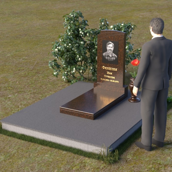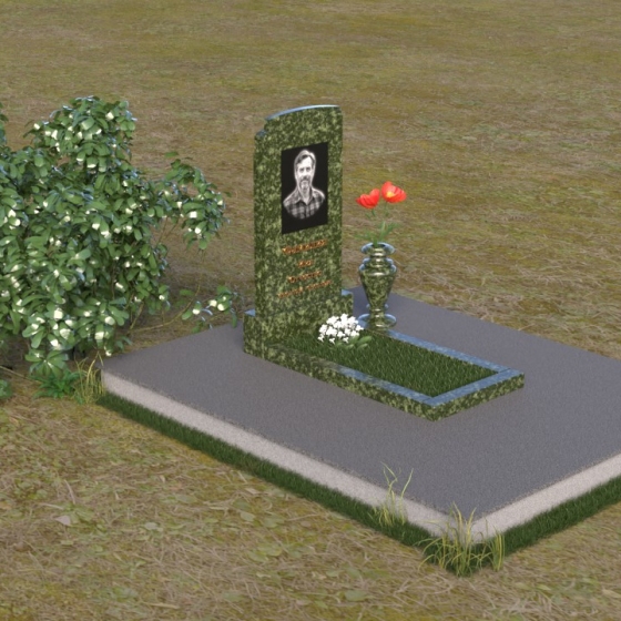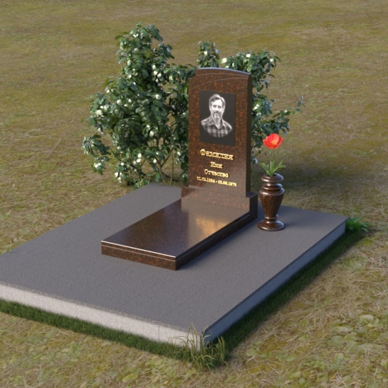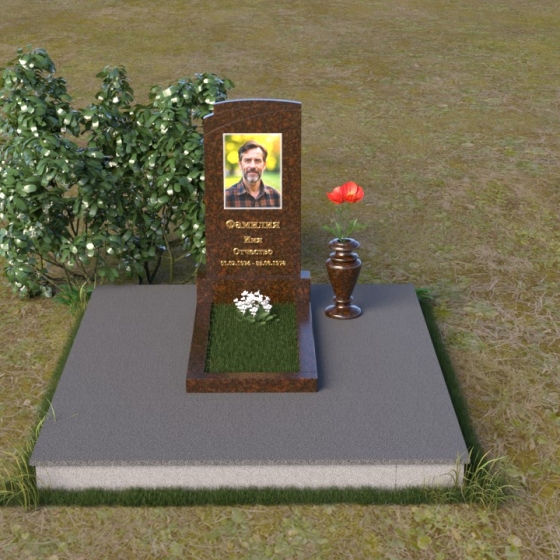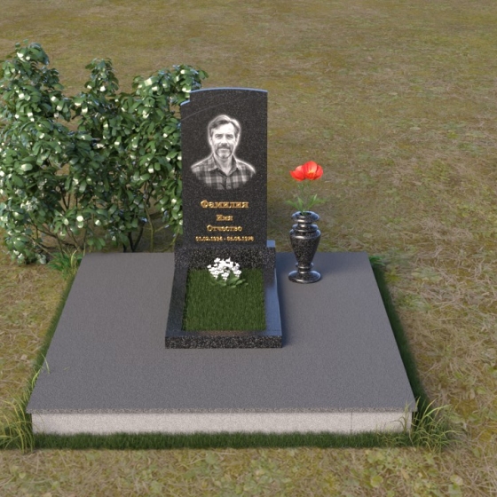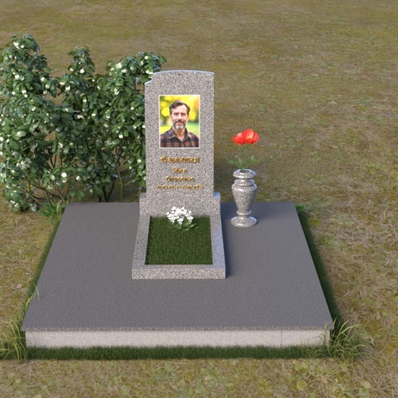 Мемориальная композиция ПВ 075 представляет собой элегантное и сдержанное решение, в котором гармонично сочетаются строгие геометрические формы и отполированные поверхности. Вертикальная стела, выполненная из прочного камня, имеет прямоугольную форму с мягко скругленными углами, что придает ей визуальную мягкость. На стеле расположено гравированное изображение усопшего, выполненное с высокой степенью детализации. Ниже портрета располагается надпись с именем и датами жизни, выполненная элегантным шрифтом. Горизонтальная плита, расположенная перед стелой, имеет идеально отполированную поверхность, отражающую небо и окружающий пейзаж, создавая ощущение глубины и покоя. Венчает композицию небольшая ваза из того же камня, предназначенная для цветов.