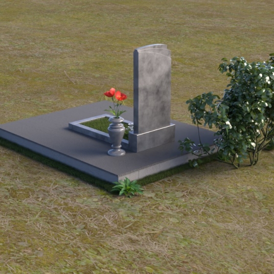 Основание мемориальной композиции – широкая плита, выполненная из камня с матовой фактурой. Ее цвет контрастирует с глянцевой поверхностью стелы и горизонтальной плиты, создавая визуальный интерес и подчеркивая строгость линий. Геометрия модели продумана до мелочей: от основания, надежно покоящегося на земле, до вертикальной стелы, устремленной ввысь. Плавные переходы между элементами композиции создают ощущение гармонии и завершенности.